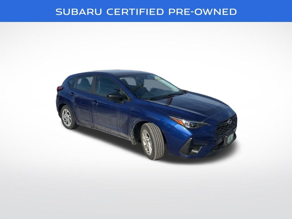 Oliver Subaru of Rutland is proud to present you with another True Market Priced Pre-Owned Vehicle. This 2024 Subaru Impreza Subaru Certified Pre-Owned is loaded with the following Factory Options: 16" Alloy Wheels, 4-Wheel Disc Brakes, Four wheel independent suspension, Radio: Subaru STARLINK Dual 7.0" Multimedia System, and Steering wheel mounted audio controls Subaru Certified Pre-Owned Certified, 16" Alloy Wheels, 4-Wheel Disc Brakes, Four wheel independent suspension, Radio: Subaru STARLINK Dual 7.0" Multimedia System, Steering wheel mounted audio controls, 4 Speakers, ABS brakes, Air Conditioning, AM/FM radio: SiriusXM, Anti-whiplash front head restraints, Auto High-beam Headlights, Automatic temperature control, Brake assist, Cloth Upholstery, Driver door bin, Driver vanity mirror, Dual front impact airbags, Dual front side impact airbags, Electronic Stability Control, Exterior Parking Camera Rear, Front anti-roll bar, Front Bucket Seats, Front Center Armrest, Front dual zone A/C, Front reading lights, Fully automatic headlights, Illuminated entry, Knee airbag, Low tire pressure warning, Occupant sensing airbag, Outside temperature display, Overhead airbag, Overhead console, Panic alarm, Passenger door bin, Passenger vanity mirror, Power door mirrors, Power steering, Power windows, Rear window defroster, Rear window wiper, Remote keyless entry, Security system, Speed control, Speed-sensing steering, Split folding rear seat, Spoiler, STARLINK/Apple CarPlay/Android Auto, Tachometer, Telescoping steering wheel, Tilt steering wheel, Traction control, Trip computer, Variably intermittent wipers, and Wheels: 16" x 6.0" Full Cap 1/2 J Steel!!